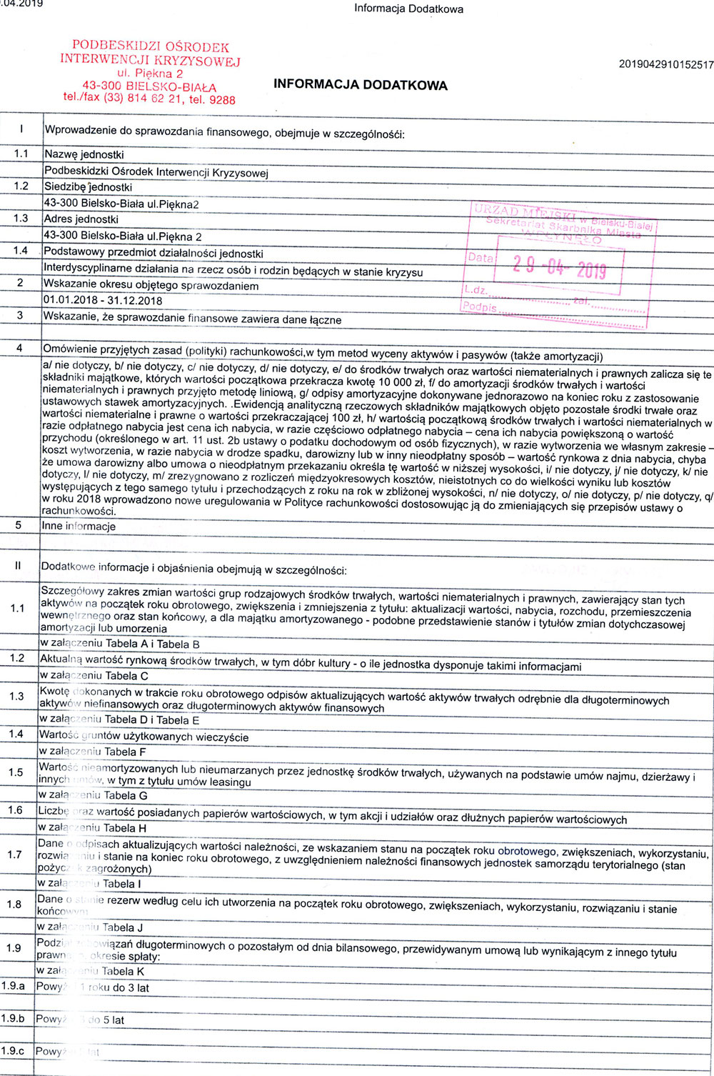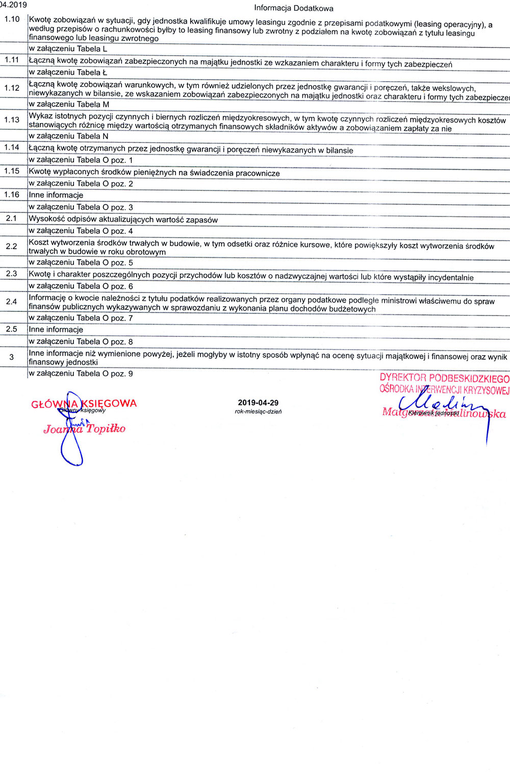 Informacja dodatkowa 2019